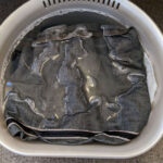 大体、3回ぐらい水を替えればOK。水の色が薄青くなったら水洗い完了。